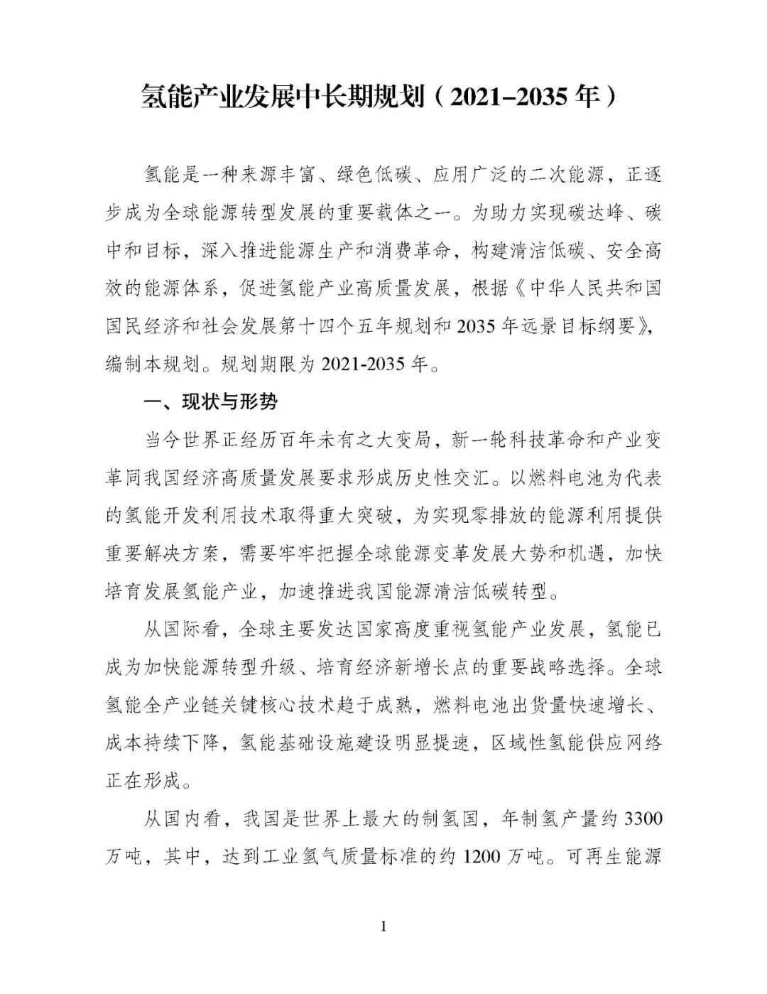 重磅!国家发展改革委、国家能源局联合印发 《氢能产业发展中长期规划(2021-2035年)》
