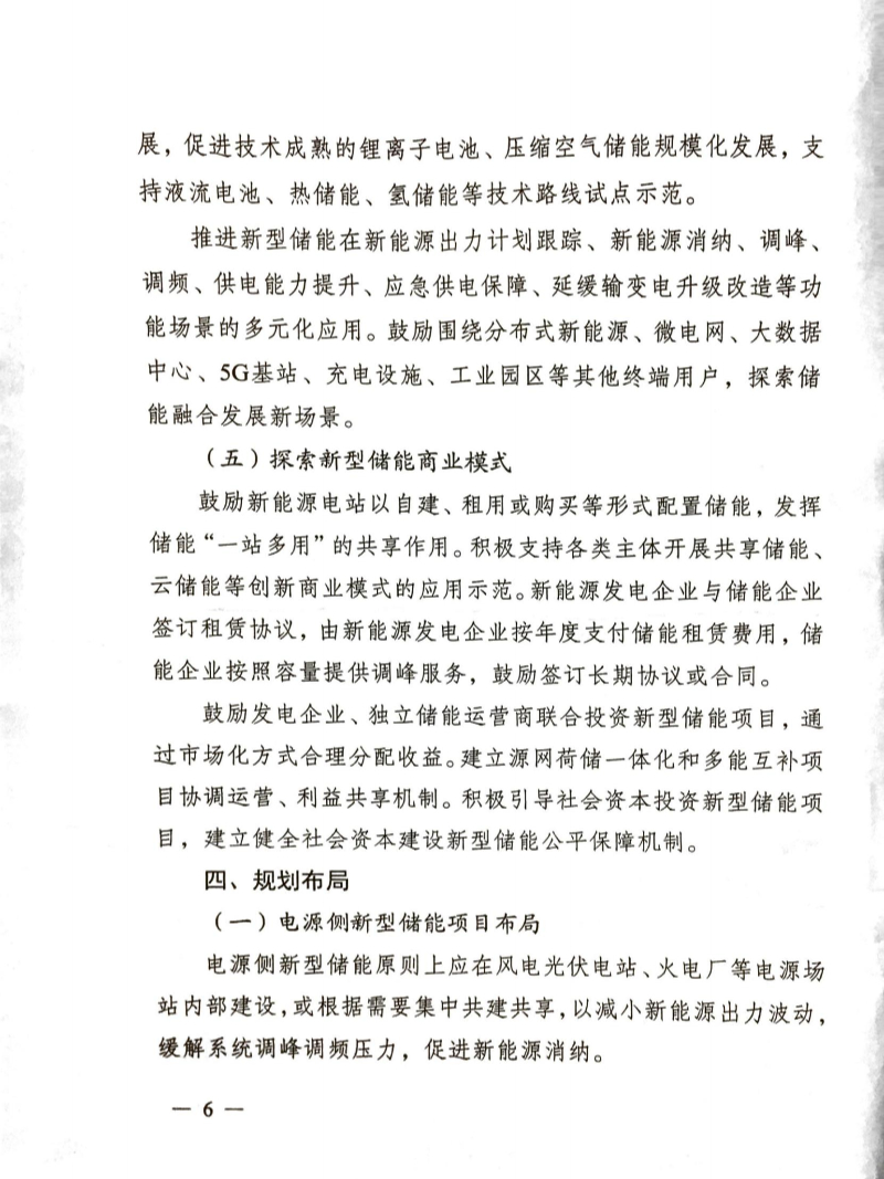 完善市场机制。完善适应新型储能发展的电力市场体系,推动新型储能以独立电站、储能聚合商、虚拟电厂等多种形式参与辅助服务,鼓励配建新型储能与所属电源联合参与电力市场。探索建立独立储能作为新型市场主体参与中长期和现货市场交易机制,独立储能可视同电力用户在低谷时段充电,视同发电企业在高峰时段向电网送电,并提供调频、黑启动等辅助服务,发挥其移峰填谷和顶峰发电作用。